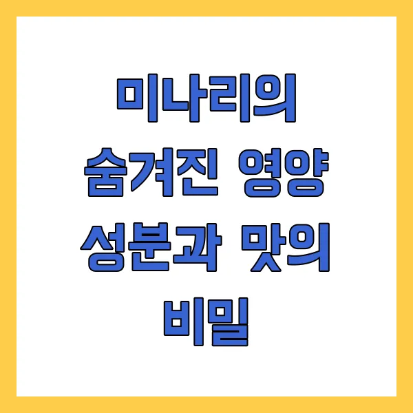 미나리는 그냥 물에 사는 풀떼기가 아니에요. 보기보다 정말 알찬 영양 덩어리랍니다. 아삭한 식감과 은은한 향긋함이 매력적인데요, 이 맛과 향 뒤에는 우리 몸에 좋은 다양한 성분들이 숨어있어요.